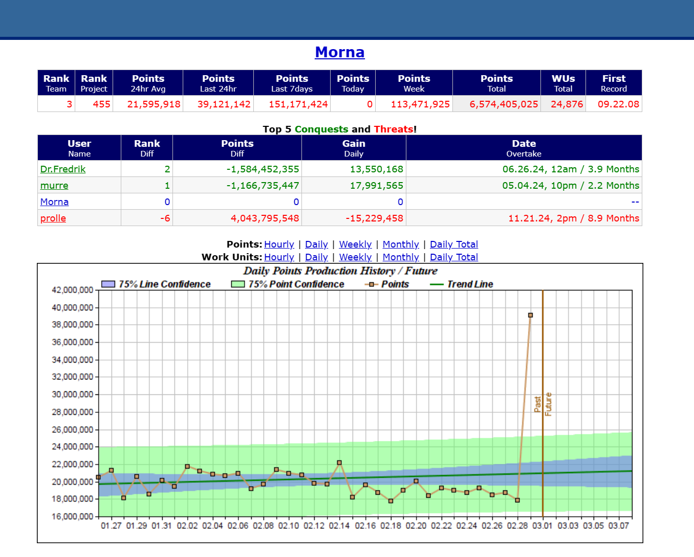 So, #2 spot is ~3 weeks away and then the lucrative #1 is a mere ~1.5 months away. Am starting to look into some sort of orchestration for dual tasking the GPU with 80% GPU time for FaH and 20% for some hashcat play for hashmob.net Hostkey. We will see.